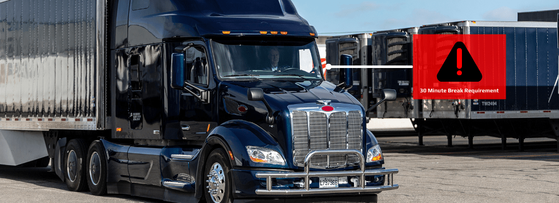 Drivers must stop driving if more than 8 hours of driving have passed without at least a consecutive 30-minute interruption of driving. The break (or interruption of driving time) can be satisfied by any non-driving activity or a combination of non-driving activities of 30 consecutive minutes.