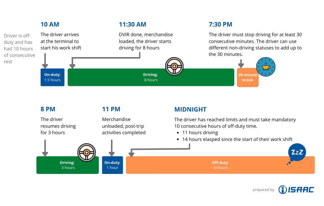 A driver may drive a maximum of 11 hours after 10 consecutive hours off duty.