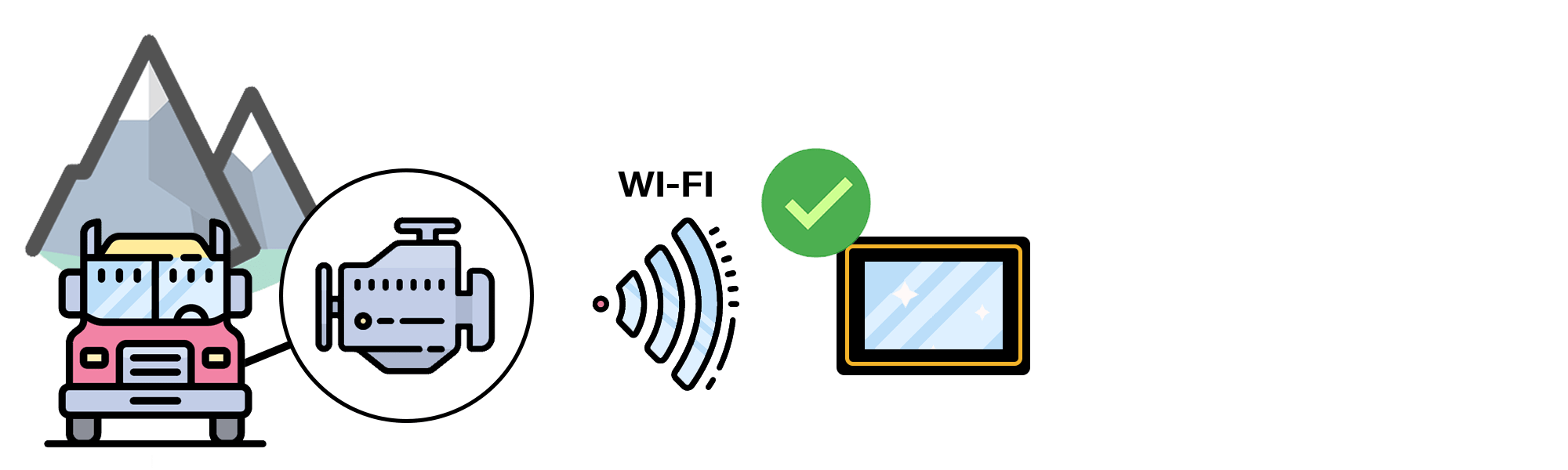 Le lien entre le moteur et le logbook du chauffeur se fait de différentes façons : Wi-Fi, Bluetooth, par câble ou cellulaire. Peu importe la méthode utilisée, il doit y avoir une connexion continue. Autrement dit, pour être légal, le chauffeur doit toujours avoir en main les informations de sa fiche journalière à jour.